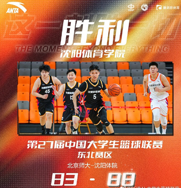 24直播网3月13日讯 CUBAL东北赛区进入第三轮对决,北京师范大学和沈阳体育学院迎来一场交手。首节开局苏克和肖洋的两记三分帮助北京师大取得8-1的开具;沈阳体院开局稍显慢热,不过袁舒松连续冲击篮下拿分破荒后和对手开启拉锯战;双方之后一路僵持几乎只有一个球的差距,末段又是袁舒松的连续拿分帮助沈阳体院拿到本场第一次领先,不过北京师大最后依靠吴士广的罚球重新取得1分领先结束第一节。次节北京师大又是三分打开局面并最多拿到6分领先,这之后双方都遭遇短暂得分荒,但沈阳体院率先破荒并依靠李杰的三分拿分,他们也顺势送上一波11-4的攻势一举反超比分,北京师大最后时刻找回感觉,肖洋最后再度命中三分并帮助球队51-45领先沈阳体院进入下半场。休息归来沈阳体院连续抓反击抢分,姜相杰外线命中三分的同时还能在内线制造杀伤罚球抢分,沈阳体院送出12-2的攻势一举反超比分;北京师大攻防两端全面落入下风,肖洋的2+1帮助球队破荒但无力阻止颓势,而沈阳体院在李杰的罚球和三分进球中掌控比赛并取得5分结束第三节。末节开局双方失误不断,李杰一直保持着不错的状态并在开局连续拿分为沈阳体院守住优势;北京师大则不断冲击篮下抢分,双方交替得分分差一直都不大,北京师大多次追至一球差距但始终无法扭转局势,毕洪贺最后制造犯规两罚全中拉开3分领先,北京师大则在最后时刻出现失误错失机会。最终,沈阳体育学院力克北京师范大学拿下比赛。