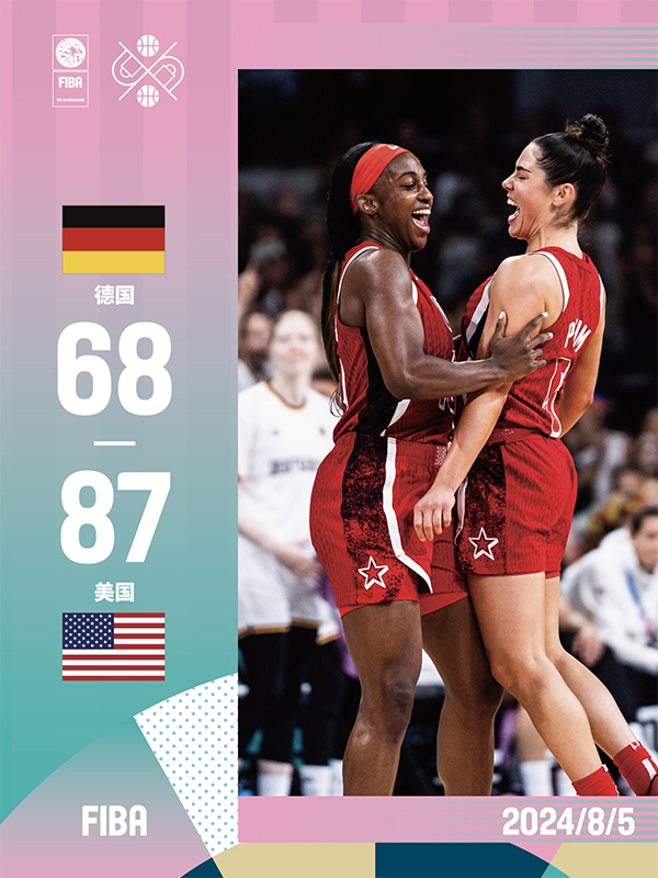 24直播网8月5日讯 奥运女篮小组赛,德国女篮对阵美国女篮。开场后德国迅速进入状态建立起领先,美国靠着斯图尔特一人艰难拿分,在第一节后半段美国全队逐渐进入状态缩小分差。第二节美国提升攻防的强度和速度,德国失误增多,美国掀起反扑单节净胜15分一举将比分反超。易边再战,美国依旧保持不错的比赛强度,德国没有坚持多久就被美国打出攻势将分差拉大到20分以上。最后一节德国也无力缩小分差,最终美国87-68轻松击败德国。