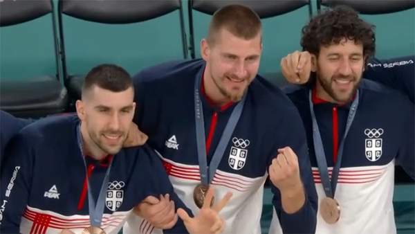 在颁奖仪式上,美国队、法国队和塞尔维亚队站上领奖台,塞尔维亚队率先领取铜牌,保罗-加索尔为他们颁发铜牌,加索尔与约基奇拥抱时现场观众集体欢呼,之后约基奇握拳以及示意全队合影。