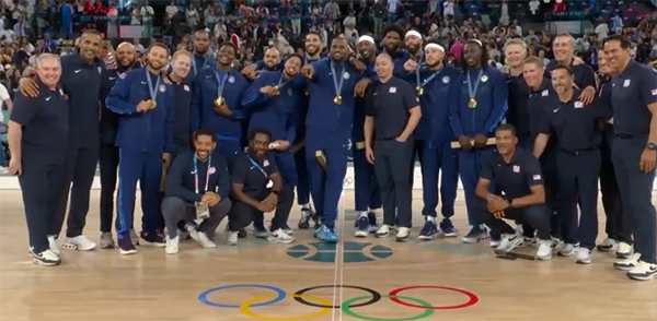来源:24直播网08-11 11:0624直播网讯 北京时间8月11日,巴黎奥运男篮落下帷幕,美国男篮击败法国夺得金牌,创造奥运五连冠伟业;法国队银牌,塞尔维亚夺得铜牌;美国男篮夺冠合影,詹姆斯坐在C位全队咬金牌;詹姆斯荣获奥运男篮MVP,携手库里入选最佳阵容,杜兰特无缘落榜。