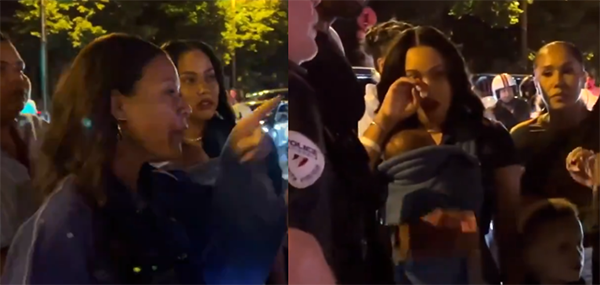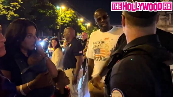 视频画面显示,被一些法国人袭击和骚扰后与当地警察交谈;库里的母亲索尼娅与法国警察进行了对峙,,阿耶莎抱着小儿子十分无助,多次擦眼泪;追梦格林也在现场质问警察:所以即使孩子的头被打了,你们还是无能为力吗?
