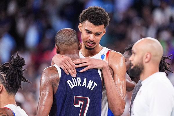 来源:24直播网08-15 11:2824直播网讯 2024年巴黎奥运会已经结束,法国男篮在决赛中不敌美国男篮从而夺得银牌,美国队夺得金牌;赛后文班亚马泪洒赛场并且紧紧拥抱杜兰特。
