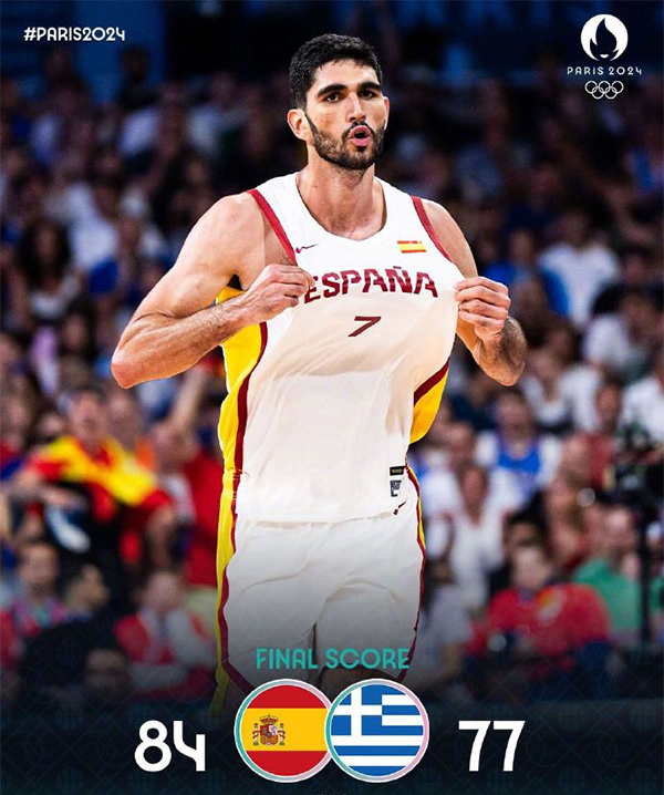 24直播网讯 7月30日 奥运会男篮A组迎来一场关键对决,西班牙男篮和希腊男篮狭路相逢,两支球队在各自的首场比赛中双双输球遭遇开门黑。首节之争双方状态相当且外线手感都非常不错,希腊方面字母哥联手卡拉西斯和帕帕扬尼斯,三人合力拿下球队第一节22分里的20分;西班牙这边阿尔马达表现神勇拿下10分紧追比分;次节西班牙外线突然下起三分雨,他们这一节命中7记三分,上半场三分球17投11中的命中率直接打崩希腊,节中送出一波19-5的攻势一举扭转局势并带着14分优势进入下半场。休息归来西班牙男篮状态迅速回落5分钟里仅得6分;希腊抓住机会送出跨节16-6的攻势并一度追平比分;不过最后时刻西班牙及时站出来用一波8-0重新拉开比分奠定胜局,字母哥则错失绝平三分。最终,西班牙力克希腊拿下比赛,后者遭遇2连败。