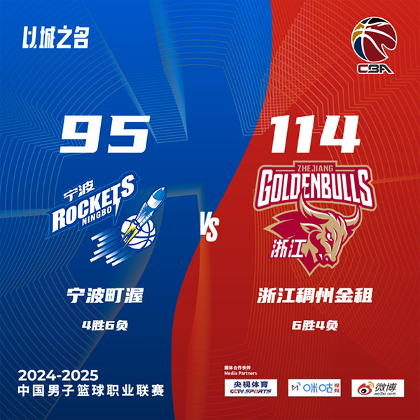 24直播网11月2日讯 CBA常规赛,浙江客场挑战宁波。浙江3连胜排在第九,宁波暂列第十三上半场,浙江内外开花很快取得两位数领先,宁波不断冲击内线苦苦追赶,浙江持续发力一举将分差拉开到20分以上,次节宁波进攻回暖,但浙江稳扎稳打保持优势,半场战罢浙江63-46领先宁波。下半场,双方围绕20分左右的分差展开拉锯战,宁波奋力反击一度将分差迫近到个位数,浙江多点开花稳住局势,最终,浙江114-95击败宁波,客场过关。