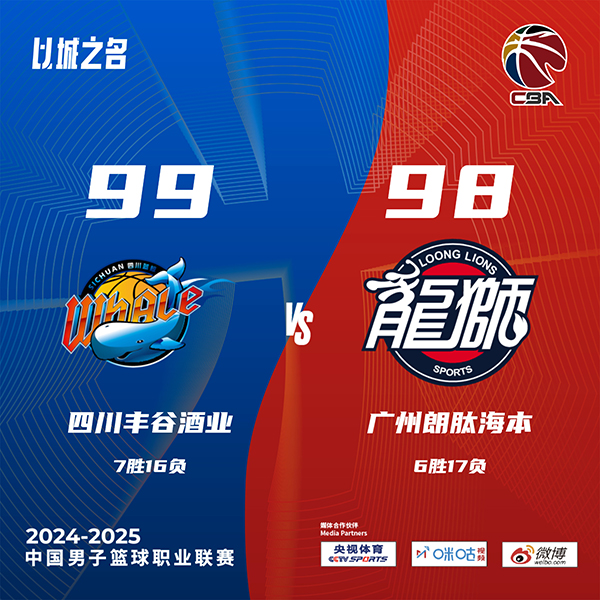 24直播网讯北京时间12月28日讯 CBA常规赛继续进行,四川主场迎战广州,两队战绩同为6胜16负,广州近期苦吞6连败,四川上场不敌广厦。首节开打后双方互相试探,广州率先进入状态一度占优,但萨姆纳早早发力连续取分,四川回敬14-2攻击波后来居上,首节结束时四川领先7分,次节回来,萨姆纳不断杀伤罚球涨分,无奈其他队友状态低迷,广州抓住机会不断缩小分差,半场战罢,四川优势仅剩2分。易边再战后两队陷入鏖战,萨姆纳无人可挡单节狂揽22分,沃伦联手道格拉斯及时回应,三节结束后四川依然领先4分,末节决战,双方交替领先鏖战至最后时刻,王云章抢断反击打进,沃伦出现致命失误,亨特两罚不中但焦泊乔仓促绝杀未果,最终四川99-98险胜广州送对手7连败。