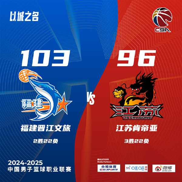 24直播网讯 北京时间12月31日讯 CBA第二阶段赛事继续开打,福建和江苏迎来一场对决,这也是倒数第一和倒数第二之间的对决,目前联盟副班长福建正遭遇15连败。首节之争福建状态依旧糟糕,面对联盟场均得分最低的江苏却丢了36分,开局被江苏打了一波11-2后就一直被动追分;不过江苏这个赛季一直进攻不稳定的老毛病在第二节出现,他们7分钟里仅得8分把自己带崩,福建笑纳大礼送出23-8的攻势直接弯道超车,不过福建的问题也是进攻端不稳定最后4分钟里仅得3分,江苏回暖回敬13-3的攻势夺回3分优势进入下半场。休息归来双方前期状态都不好一路打铁,不过福建从这波低迷中率先反弹,他们打出跨节21-6的攻势一举拉开两位数分差奠定胜局。最终,福建击败江苏结束15连败。