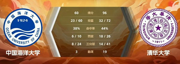 24直播网3月15日讯 CUBAL一级联赛东北赛区,中国海洋大学今日对阵清华大学,双方目前都是三胜零负未尝败绩。比赛上来,两队进入状态都较慢,直到一分多钟任霄鹏才利用罚球打破僵局,而清华大学这边在两分半之后才拿到首分,双方短暂拉锯后清华大学突然发力,他们一波16-0的小高潮将分差拉开到两位数,首节结束,清华大学28-17领先中国海大。次节回来,中国海大在前两分钟的时间里没有得分,清华大学连拿五分继续扩大着自己的领先优势,中国海大此后虽有反扑势头,但却迎来了清华大学更加凶猛的进攻高潮,半场战罢,清华大学51-33领先中国海大。易边再战,双方的进攻表现都出现下滑,尤其是中国海大72这边,他们单节只拿到了7分,而清华大学这边还是突破了20分,单节净胜14分后分差已经突破了三十分,三节结束,清华大学72-40领先中国海大。末节比赛,双方都打得相对放松,很多球员也都获得了上场的机会,不过中国海大依旧没有获得任何迫近比分的机会,分差已经达到了四十分以上,最终清华大学96-60大胜中国海大。