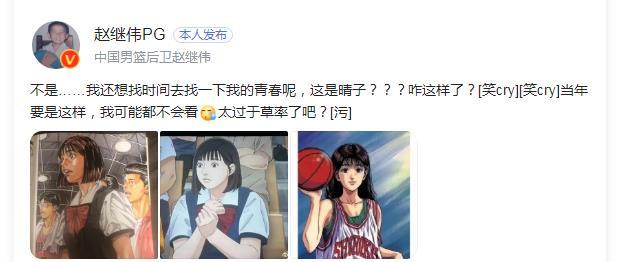 不过近期,赵继伟也是发布了动态,吐槽了《灌篮高手》大电影中晴子的样子,赵继伟表示:“不是……我还想找个时间去找一下我的青春呢,这是晴子?咋这样了?当年要是这样,我可能都不会看,这过于草率了吧?”