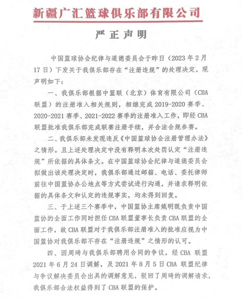 反击!新疆男篮发布声明,五点回应篮协,周琦事件或迎来转折