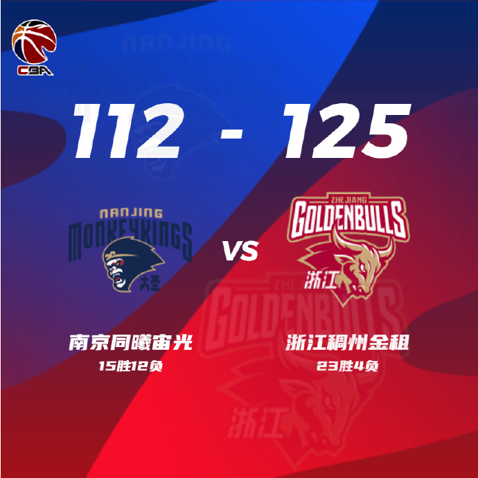 浙江125-112力克同曦 余嘉豪35+11 刘泽一29+9 赵柏清32+6
