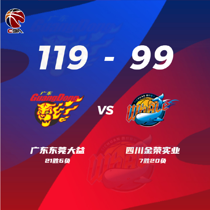 广东119-99轻取四川 布鲁克斯30+12+6 胡明轩9+10 郭金林19分