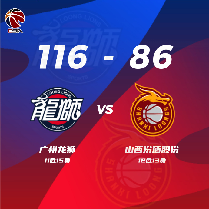 广州116-86轻取山西 祝铭震21+7 陈盈骏8+7+19 常林18+14