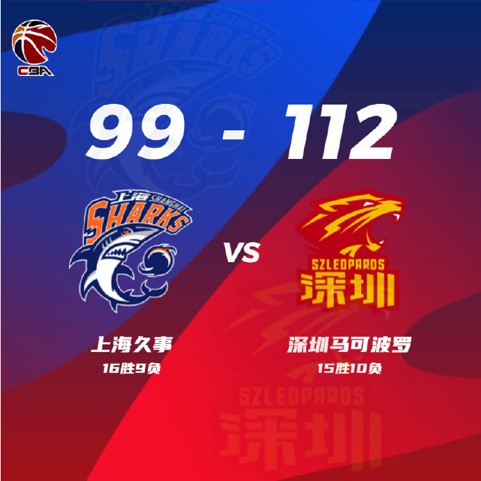 深圳112-99轻取上海 顾全22+5+3 萨林杰22+9 布莱德索17+8+7