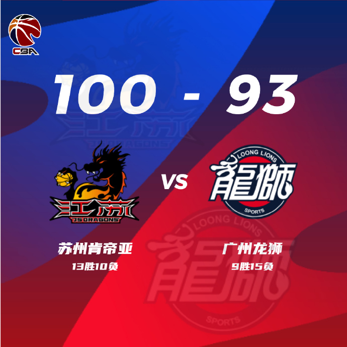 江苏100-93战胜广州 布莱克尼39分 吴冠希16+14 祝铭震25+10