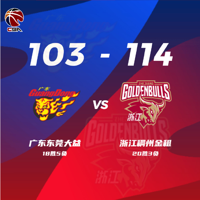 浙江114-103终结广东 赖特34+16 余嘉豪20+6 马尚30+7+7