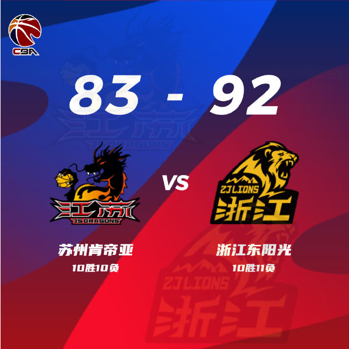 来源:24直播网01-01 20:15 24直播网讯:北京时间1月1日,CBA常规赛继续进行,江苏对阵浙江东阳光。本场比赛,广厦双塔威尔哲与胡金秋状态出色,两人利用身高优势频繁对江苏内线形成杀伤,另外小将许可的表现也十分出色,他全场多次命中外线投篮。反观江苏这边,他们只有依靠布莱克尼的个人能力艰难上分。最终,全场打完,浙江东阳光92-83江苏,取得胜利。