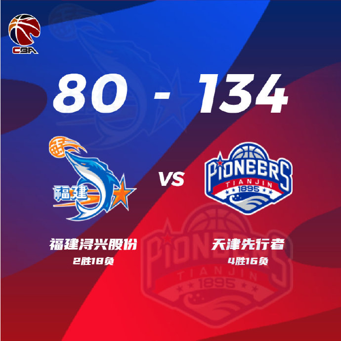 末节,福建很难组织起有效的反击攻势缩小比分,天津队依靠全队多点开花稳扎稳打仍然在扩大着比分领先,最终全场比赛结束,天津134-80福建,结束了14连败的颓势。