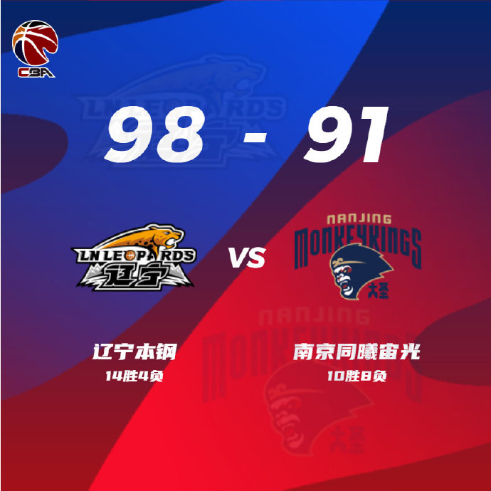辽宁98-91力克同曦 郭艾伦24+6 张镇麟21+10 皮特森47+6
