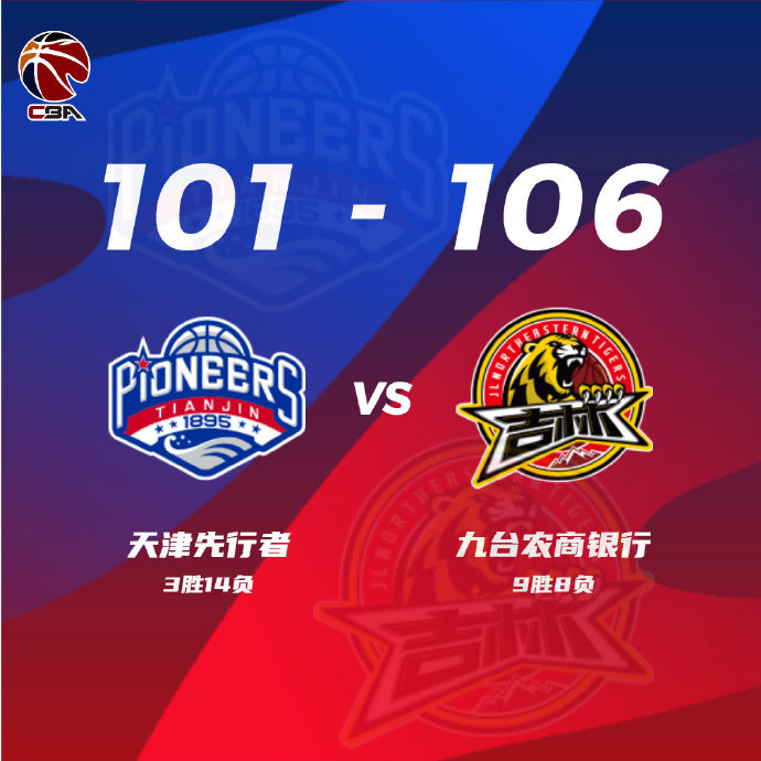 吉林106-101战胜天津 姜伟泽23+8 姜宇星22+6 金鑫17分