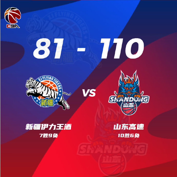 山东(10-6):兰兹博格27分4助攻、吉伦沃特23分8篮板、陈培东17分5篮板6助攻、高诗岩13分16篮板16助攻、乔文瀚14分5篮板、贾诚12分11篮板。