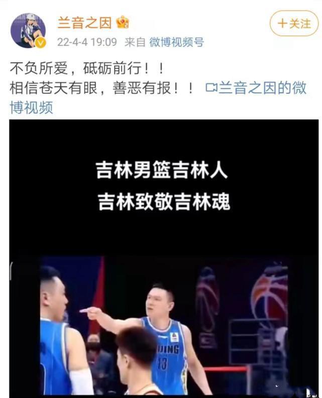 在社交媒体上,兰音表示:不顾所爱,砥砺前行,相信苍天有眼,善恶有报。同时兰音配上了标题为:吉林男篮吉林人,吉林致敬吉林婚,而视频的封面正是当年对于自己恶语相向的朱彦西。