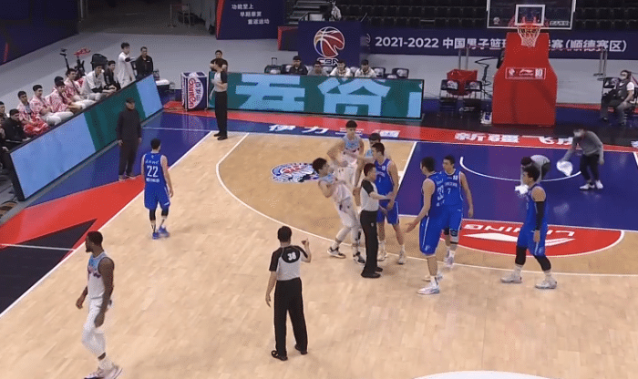 第一节,天津男篮进攻的机会,于德豪在篮下卡位的时候与张兆旭相互勾着胳膊,随后于德豪胳膊勾倒张兆旭,期间还有一个甩手的动作。张兆旭蹲在地上很无奈,朝着裁判示意对手有犯规的动作,他的对手孟子凯不干了,推搡于德豪,好在事态没有升级,孟子凯想为张兆旭出头,被吹罚了一个技术犯规。