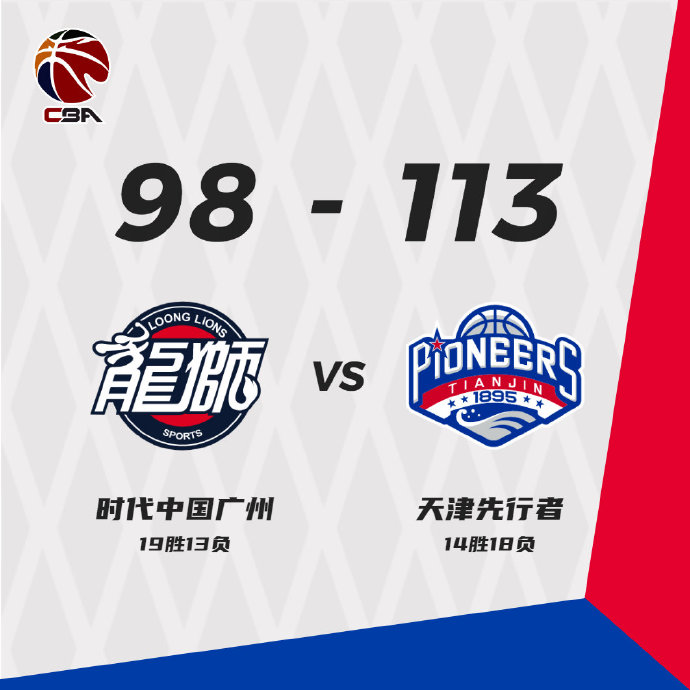 天津113-98战胜广州 罗切斯特26+6 孟子凯21+8+7帽 利夫31+15