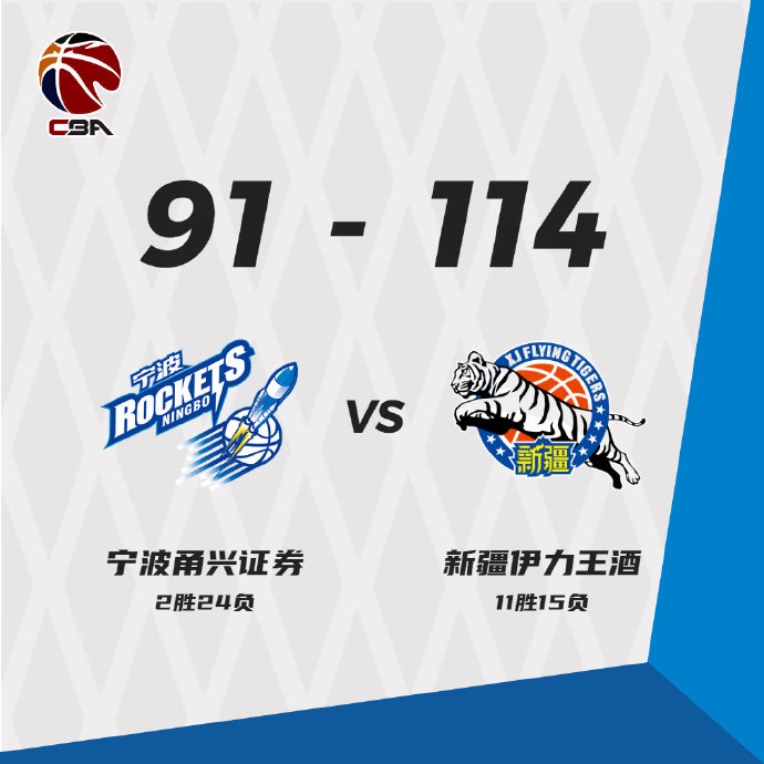 新疆114-91大胜宁波 阿不都19+5 鲁吐布拉21+7 斯蒂马克21+17
