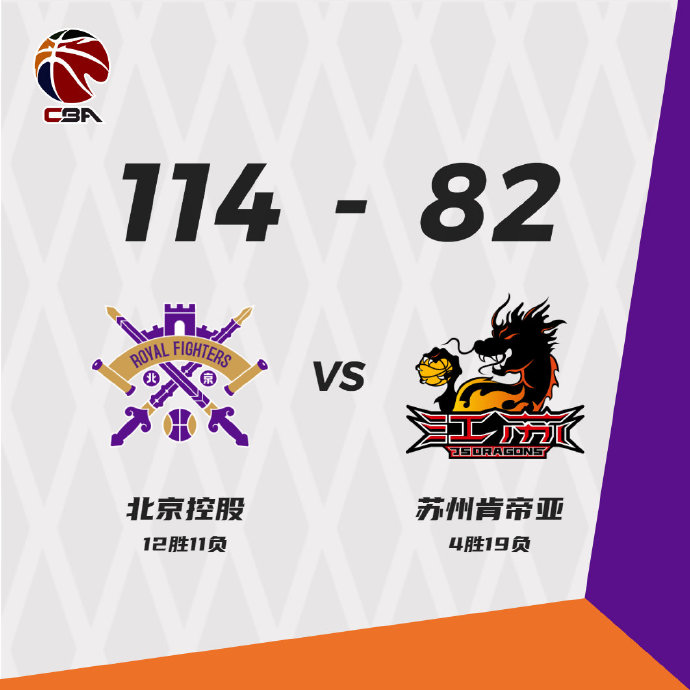 末节,分差过大其实比赛已经垃圾时间,陶彦儒强突造犯规两罚一中,廖三宁底线骑马射箭命中,双方进攻都不好,不过北控牢牢掌控节奏,分差有继续拉开态势。托多罗维奇强打造犯规两罚,北控85-61领先。苏州进攻时机有问题,也没有稳定火力点,场面上非常被动,赵率舟正面三分压哨出手,廖三宁强突,赵率舟突破抛投,马泳抛投,李禄瞳干扰球,双方攻防节奏非常快,命中率上升,李禄瞳低位接球抛投得手,托多罗维奇低位勾手命中,北控91-68领先,李楠请求暂停。廖三宁强突飞身上篮命中,李玮颢违体犯规,黄荣奇两罚全中,托多罗维奇坐镇内线,苏州很难缩小比分,无心恋战分差反而继续拉开到97-70。北控逐渐换下主力,托多罗维奇和廖三宁下场,苏州也逐渐换下黄荣奇等首发球员,李玮颢造犯规两罚一中,李禄瞳勾手上篮得手,苏州最后5分钟场上均是年轻球员锻炼。苏州72-100落后,比赛胜负无悬念,李楠例行暂停。罗凯文空切篮下出手,刘畅突破上篮,王少杰跨步上篮造犯规两罚,连得6分后北控已经106-72领先,李楠换上黄荣奇。陶彦儒外线投篮三不沾,孙桐林正面三分也投短,两队随后都没有防守强度,外线对飚奇三分,最终,北控114比82大胜苏州。