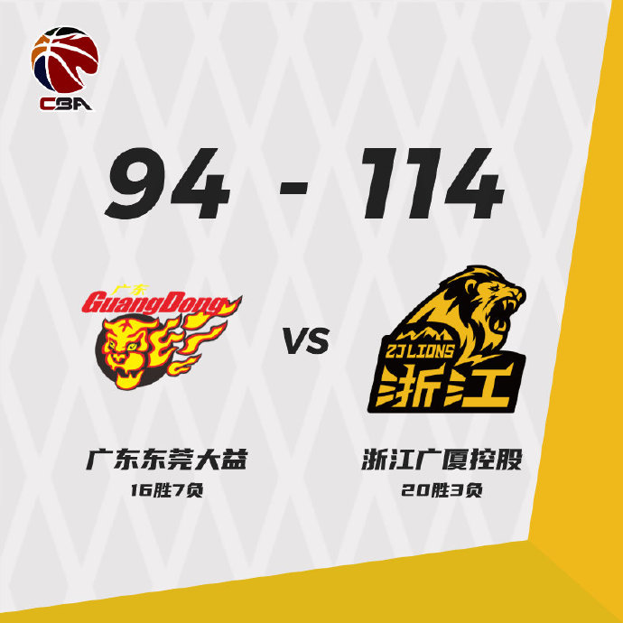 末节,赵锦洋扣篮得分,徐杰再中3分,广东队开局打出一波7-2的小高潮。随后广东队换人,徐杰补篮再得分。此后,徐杰连中3分,得分突破30分大关创生涯新高。最终,浙江广厦队以114-94击败了卫冕冠军广东队,取得了8连胜,而广东队则是两连败。
