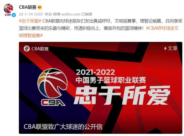 CBA公开信内容是“向球迷朋友们发出真诚呼吁,文明观赛事,理智论输赢,共同享受篮球比赛带来的乐趣与精彩,传递积极向上、兼容并包的篮球精神”,并提出了3点呼吁!新疆、广厦、山西、吉林和广州5家俱乐部迅速响应,在文章下评论支持。但球迷却不这么看!