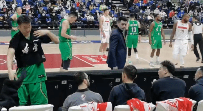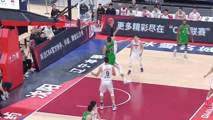 郭艾伦传球,韩德君空切直接三步暴扣,直接隔扣了周鹏,表现强势。现场的球迷们也疯狂了,这场比赛是辽篮的主场,现场也来了很多的辽篮球迷。