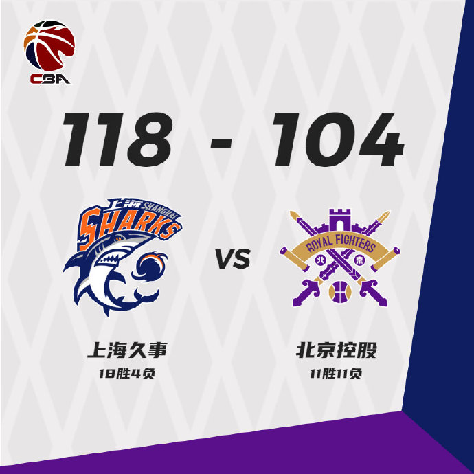 上海118-104击败北控 郭昊文25+8 王哲林17分 廖三宁20+7+12