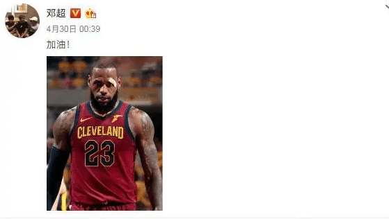 邓超和篮球明星的缘分就更多了,他在社交媒体上公开给詹姆斯加油,当时身穿骑士战袍的詹姆斯带着伤病出战,战斗精神令人动容。