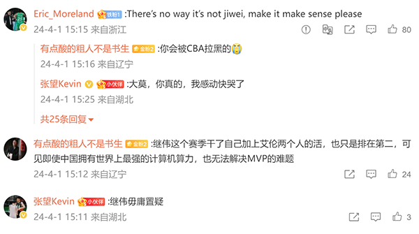 广厦的胡金秋和孙铭徽排名第三和第四,其中胡金秋累计贡献值6.27、孙铭徽累计贡献值5.8。另一位辽篮的球员张镇麟累计贡献值5.66。天才球员杨瀚森,累计贡献值5.11,他们距离MVP之间还有比较大的差距。