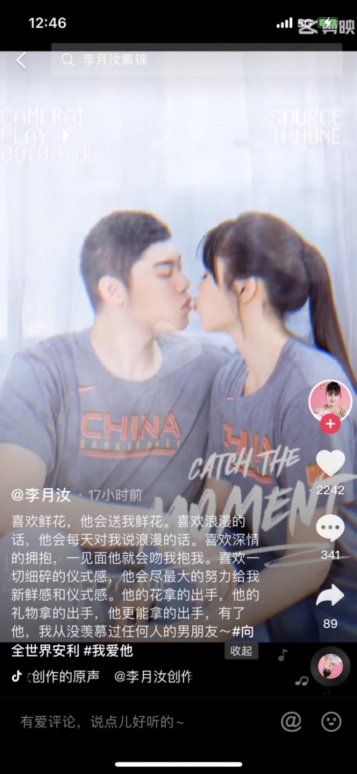 与CBA球员相恋!李月汝晒与男友亲吻照:有了他,从没羡慕过其他人!
