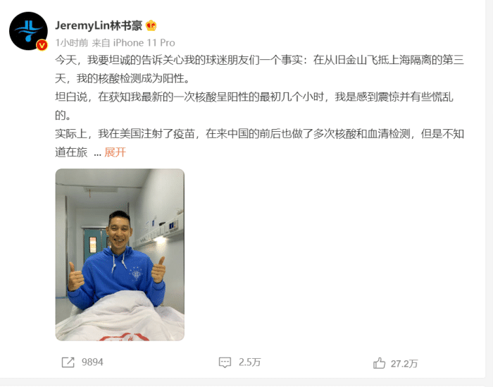 林书豪在上海隔离+确诊阳性!在美国打了疫苗也没用,名记:两周康复!
