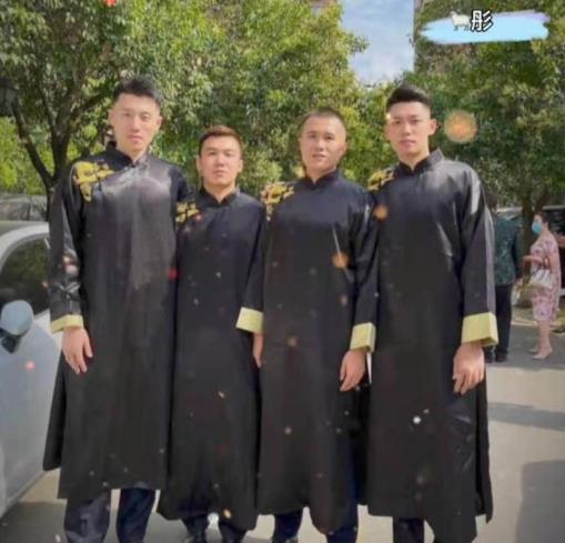 除了新娘的孕肚抢镜之外,4个伴郎的中式礼服也引发了很多球迷的争议。对于伴郎的服装,很多球迷认为看起来很帅气,当然也有的球迷认为这套纯黑的礼服看起来并不适合婚礼这样喜庆的场合。