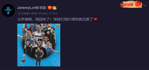 林书豪还在微博中宣布:北京首钢,我回来了,球迷们很快就见面了
