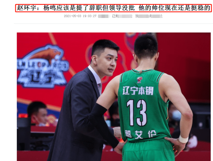 一,赵环宇曝杨鸣提出辞职,辽宁队拒绝