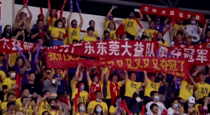 球迷们也给予了广东男篮最大的支持,在赛场上给球队加油,场外也将最大的热情给到球队,今天广东全队从诸暨回家东莞。球迷们举着“热烈祝贺广东东莞大益队勇夺2020-2021赛季结束”的横幅。