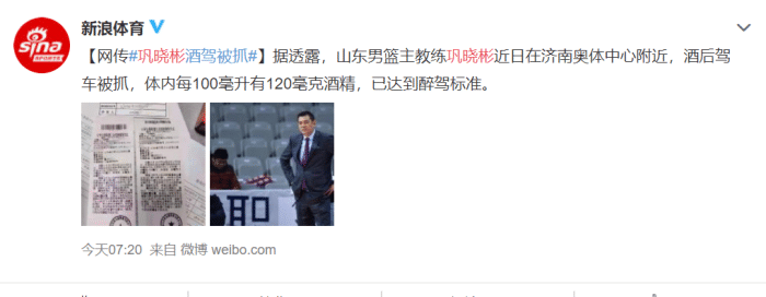 CBA丑闻!国内媒体爆料巩晓彬酒驾被抓,恐被山东队开除+官方惩罚!