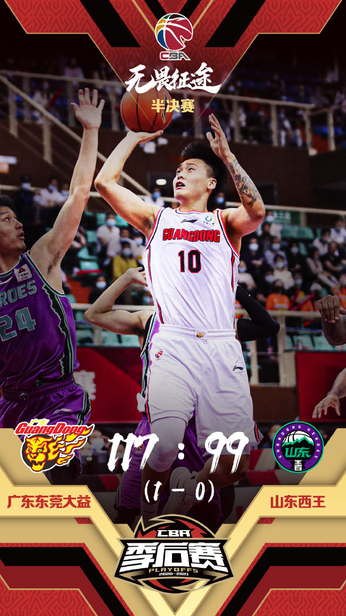 来源:24直播网04-20 23:23 24直播网讯:北京时间4月20日晚,2020-21赛季CBA展开半决赛首场角逐。卫冕冠军广东东莞大益男篮次节最多时领先38分,最终经过四节较量以117-99轻取山东西王男篮。这样,广东队总比分1-0领先。