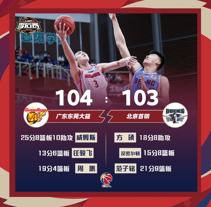广东104-103力克北京 威姆斯准绝杀25+8+10 范子铭21+9