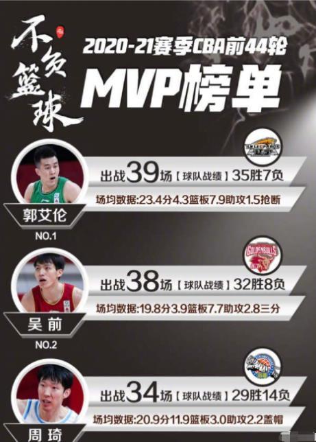 另外两张图片是郭艾伦本赛季两次领跑MVP榜单的情形,直到常规赛第44轮,郭艾伦仍是常规赛MVP的领跑者,可是赛季结束的时候,郭艾伦竟然连评选MVP的资格都没有,可以说是非常讽刺的一件事了。