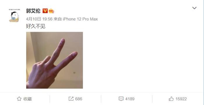 值得一提的是,郭艾伦昨天在个人微博发布了一张剪刀手的图片,这到底有什么寓意,我们不得而知。但是考虑到这是郭艾伦继全明星之后发布的首条社交媒体动态,球迷们还是可以稍微期待一下郭艾伦今晚正式回归。