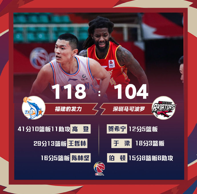福建118-104大胜深圳 高登41+10+11 王哲林29+13
