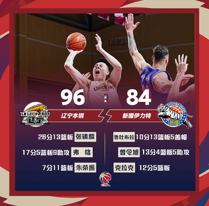 辽宁96-84战胜新疆 张镇麟26+13 鲁吐布拉10+13+5帽