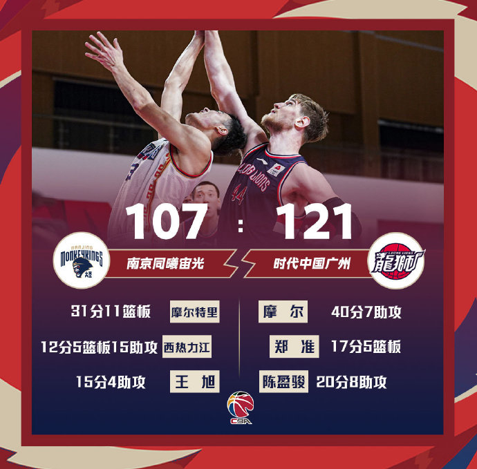 广州121-107战胜同曦 摩尔40+7 陈盈骏20+8 摩尔特里31+11
