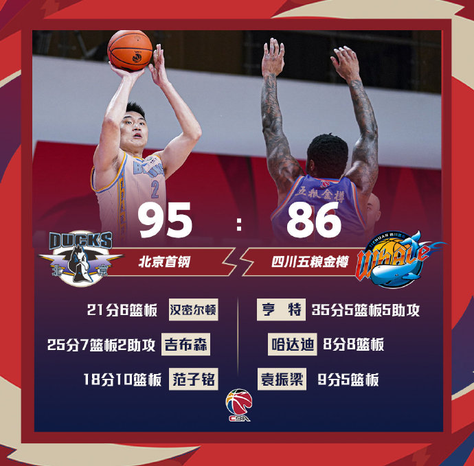 北京95-86力克四川 吉布森25+7 范子铭18+10 亨特35+5+5
